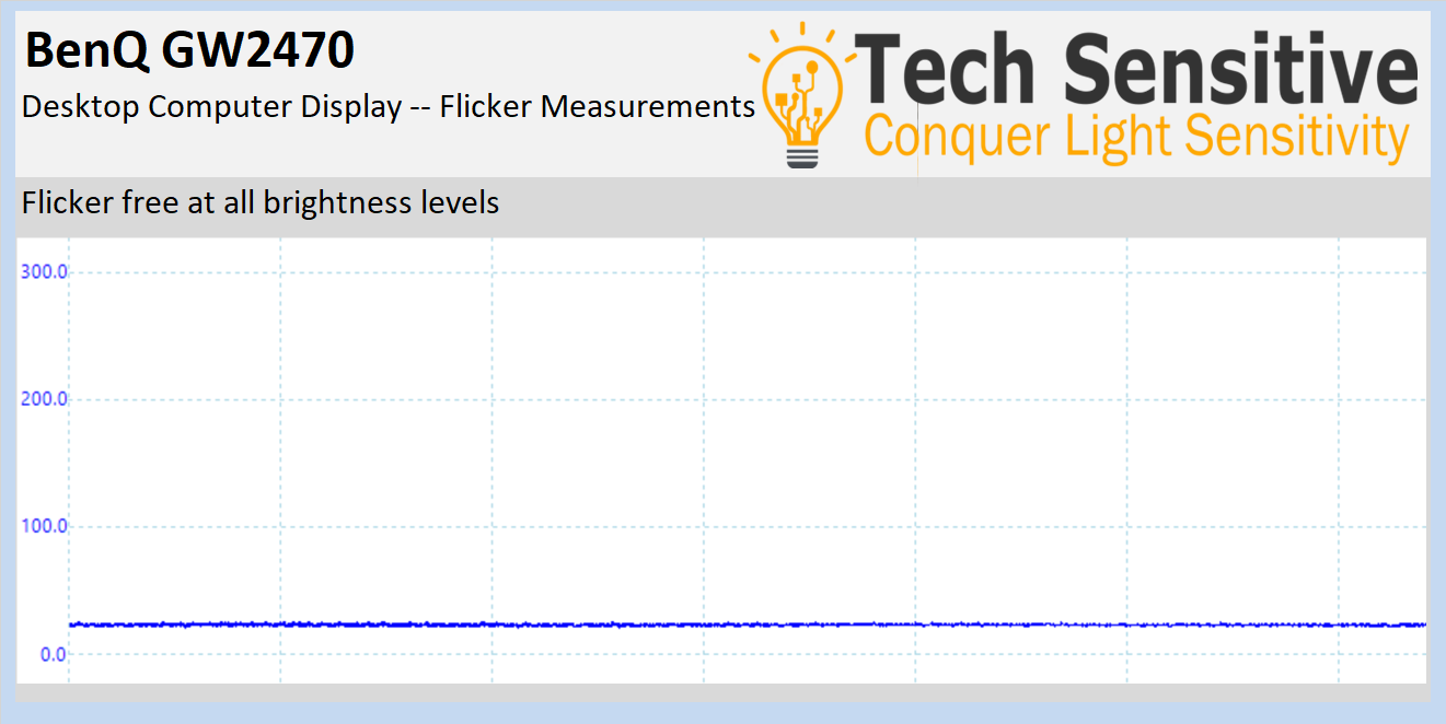 Consistent with BenQ’s Eye Care designation for the GW2470, we discovered no measurable flicker across the entire brightness range. Furthermore, the various Picture Modes available didn’t change the flicker-free nature of the GW2470.