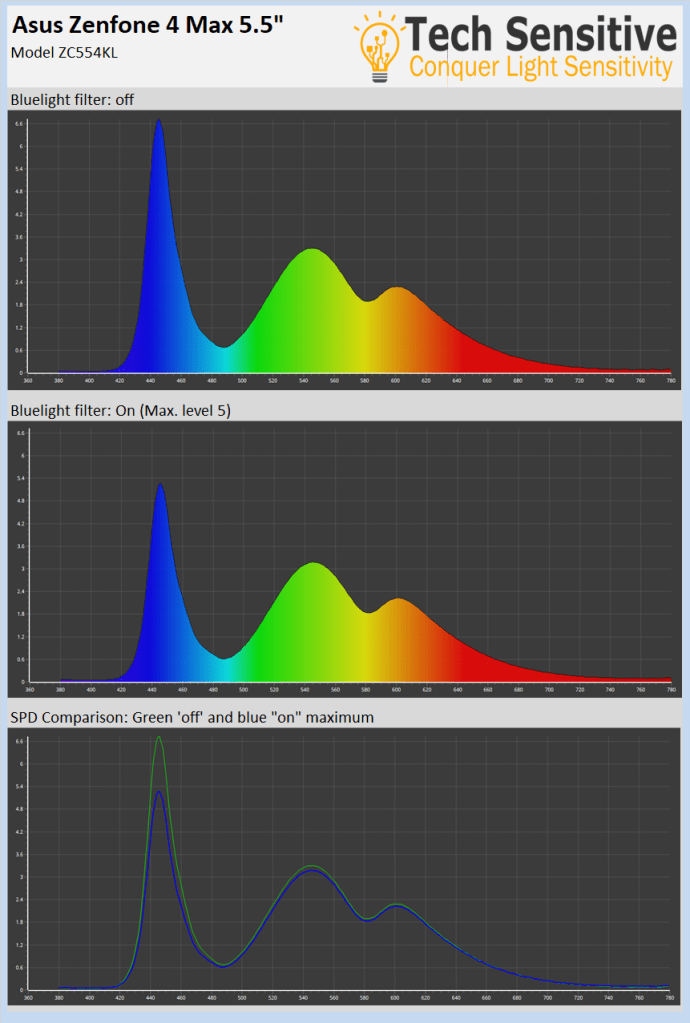 We really wanted to like the Zenfone 4 Max. At the end of the day it’s not an ideal device for those most sensitive. If you’re sensitive to blue light then it’s possible to salvage this device by using third-party software. But, the extra steps necessary when using the third-party software is cumbersome enough to dissuade us from recommending purchase of the Zenfone 4 Max for those most sensitive.